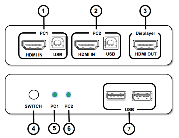 Công tắc HDMI KVM: hai nhóm nguồn Âm thanh và video độ nét cao và công tắc có sẵn với giao diện USB, Adaptive EDID, có thể thích ứng với nhiều môi trường ứng dụng phức tạp. Thiết bị có khả năng xử lý và truyền hình ảnh tuyệt vời, giúp tín hiệu đầu ra mượt mà hơn và ổn định, là một cách chuyển đổi USB HDMI đáng tin cậy, hiệu suất cao và hiệu quả