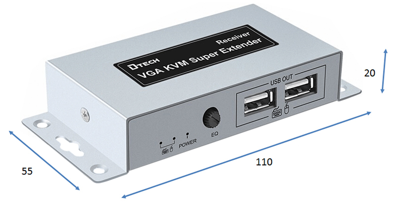 - Thiết bị nhận Reciever bao gồm 1 cổng VGA OUT, 1 cổng mạng Cat5e/6e, 2 cổng USB OUT