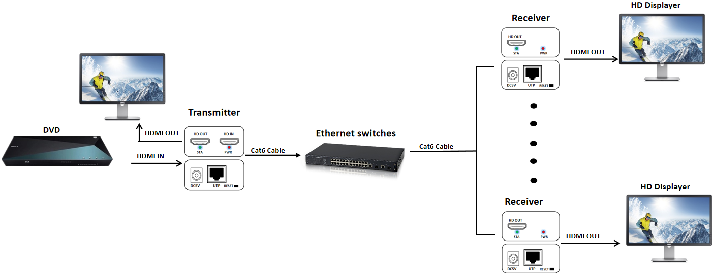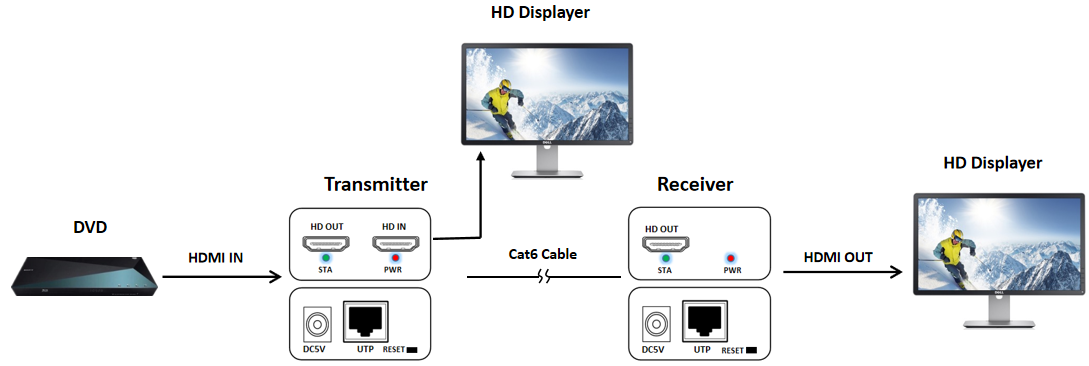- Truyền tín hiệu video và âm thanh HDMI lên đến 200M qua một cáp CAT6;