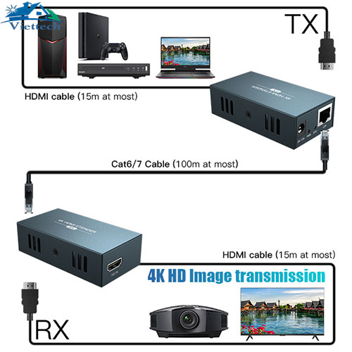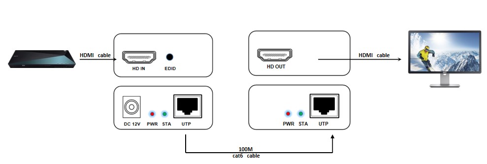- Truyền tín hiệu âm thanh và video HDMI lên đến 100m qua một cáp đơn Cat 6.