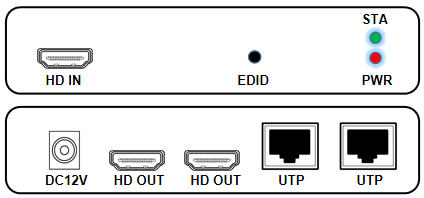 - Mục đích của nút EDID, chẳng hạn như đèn báo POWER và STATUS ở phía máymphát được bật sau khi kết nối hoàn tất, các đèn báo ở phía máy thu đều bật và màn hình không có hình ảnh hoặc biến màu, hãy bật nguồn của bộ mở rộng phân phối HDMI1 * 2 + 2 để kết nối cổng HDMI của màn hình với HDMI kết nối cổng IN, nhấn nhanh nút EDID và đèn báo sẽ tắt trong 3 giây, khởi động lại nguồn sau khi đèn nhấp nháy dừng và lặp lại các bước 1-4.