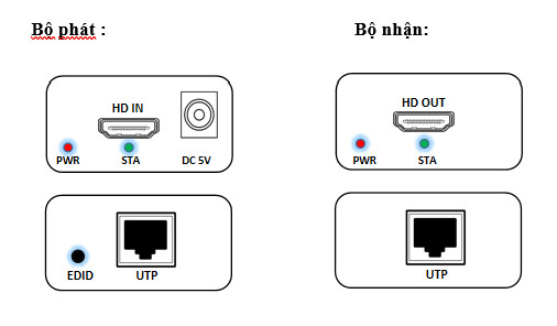 - Kết nối cổng UTP của bộ phát với cổng UTP của bộ thu bằng một cáp đơn CAT6.
