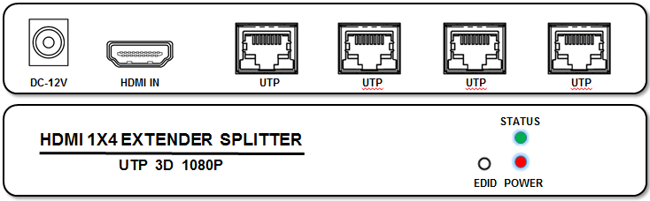 - Chuyển đổi đầu vào HDMI một kênh thành đầu ra tín hiệu 4 kênh CAT 6.