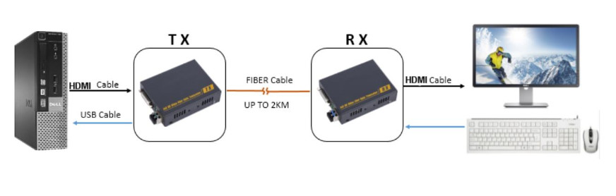 - Truyền tín hiệu video HDMI lên đến 1-2km qua cáp quang đôi;