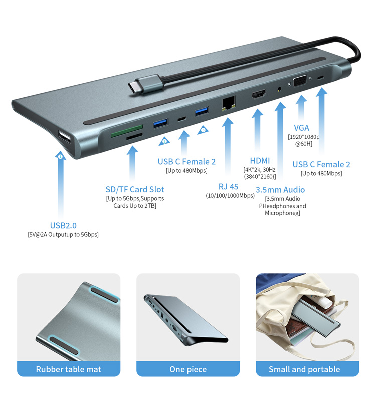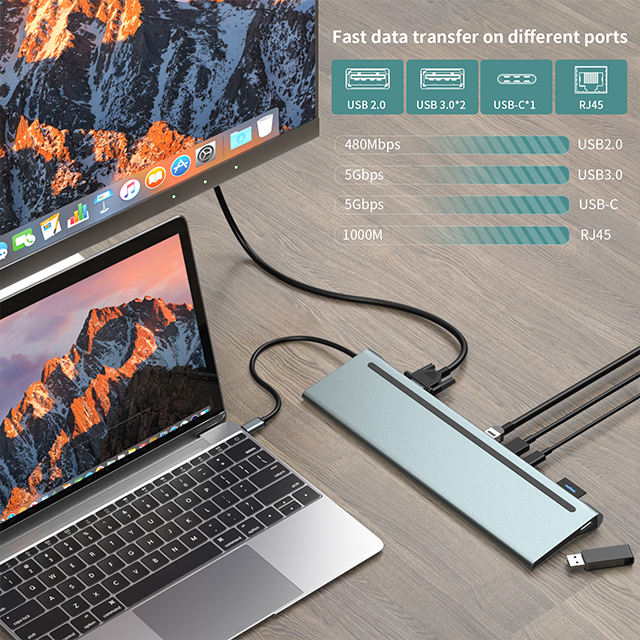 HDMI1.4*1,VGA*1,RJ45*1,PD 3.0*1,USB3.0*3,USB2.0*1,3.5mm