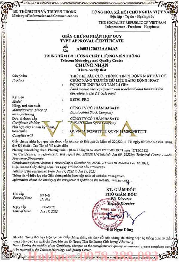 2. Giấy chứng nhận BST01-PRO